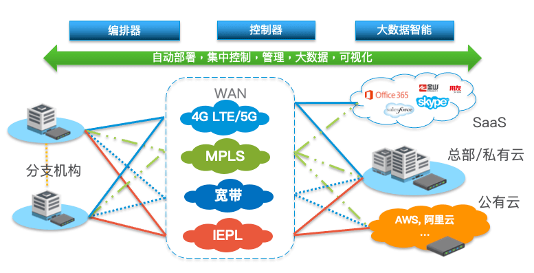 北京互聯(lián)互通企業(yè)組網(wǎng)方案適合與大中型企業(yè)和運營商。北京互聯(lián)互通通過部署企業(yè)專屬的中心控制和大數(shù)據(jù)平臺,可以對大型企業(yè)的多個放公司,分部門網(wǎng)絡(luò)進行集中編排和管控。企業(yè)的總部,數(shù)據(jù)中心和分支機構(gòu)可以有不同的拓撲結(jié)構(gòu)。該組網(wǎng)方式也支持,移動辦公人員,可通過安裝客戶端軟件實現(xiàn)接入。北京互聯(lián)互通支持各種CPE 設(shè)備形態(tài),對小型分支,大型分支,數(shù)據(jù)中心有相應(yīng)設(shè)備支持, 設(shè)備也可以以虛擬方式進行云端部署,支持AWS, AZURE,Google Cloud,阿里云,騰訊云, 天翼云,京東云等等公有云,以及KVM,VMWare, Openstack等私有部署。方案也支持多種類型鏈路( SD-WAN / MPLS / 互聯(lián)網(wǎng) / 4G / 衛(wèi)星等 )同時接入。
