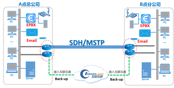 互聯(lián)互通SDH專網(wǎng)產(chǎn)品是一種基于時(shí)分復(fù)用同步數(shù)字技術(shù)建立的透明物理通道,是基于SDH/MSTP專網(wǎng),利用傳統(tǒng)電路接入方式,為用戶提供 的點(diǎn)到點(diǎn)透明鏈路網(wǎng)絡(luò)服務(wù)。該產(chǎn)品利用時(shí)分復(fù)用技術(shù),為每個(gè)用戶分配單獨(dú)的時(shí)隙,提供端到端的安全性保證。另外利用SDH環(huán)保護(hù)技術(shù), 可有效保證用戶網(wǎng)絡(luò)的可靠性,將網(wǎng)絡(luò)中斷的風(fēng)險(xiǎn)降到更低。